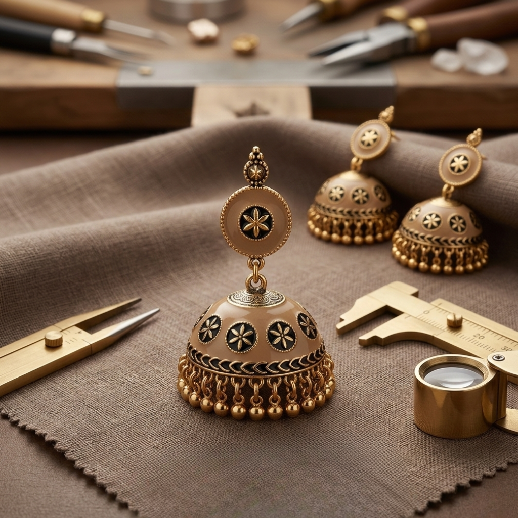 1 Pair Bollywood Style Bell Earrings With Rhinestones, Birdcage Dangle Earrings, Ethnic Fashion Drop Earrings For Women
