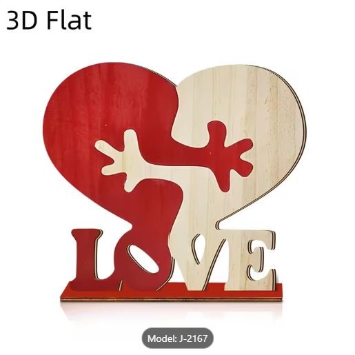 A Set of 3D Valentine’s Day Happy Hugging Theme Wooden Desktop Decorative Plaque and Ornament, Featuring a Red and White Heart-shaped Romantic Design with Interlocking Hearts, Adorned with the Word “LOVE”. A Sweet Decorative Gift for Display