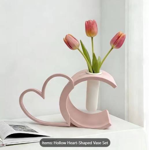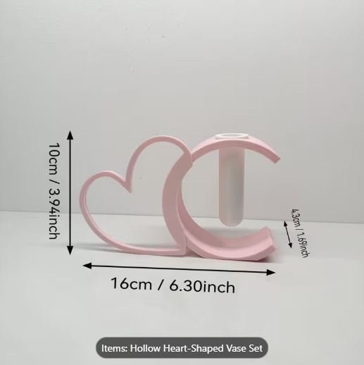 Heart-Shaped Hollow Vase – A Romantic Decorative Vase with a Unique Hollow Heart-shaped Design, Combining Creativity and Aesthetics. Made of Lightweight Plastic, It Is Durable and Easy to Clean. Individually Packaged