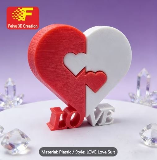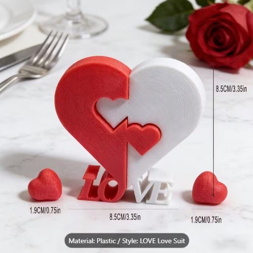 8.3Cm/3.27In X 8.3Cm/3.27In Valentine’S Day Fun Decorations: 3D Printed Heart Puzzle + LOVE Letter Decorative Small Statue
