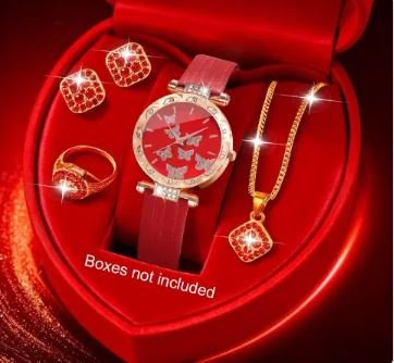 1pc Women’s Round Elegant Gorgeous PU Leather Quartz Watch and 4pcs Jewelry Set – Perfect for Daily Wear and Gift Occasions, Birthday Gift and Holiday Party Gift, Ideal for Women, Loved Ones, Friends, Lovers, Mother