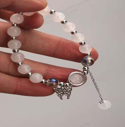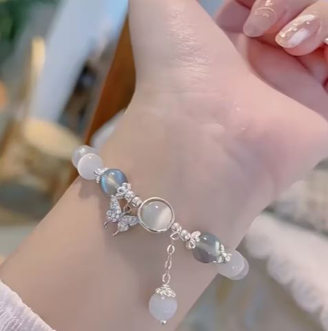 Cat's Eye Light Luxury Elastic Bracelet with Cute Butterfly Pendant Beads