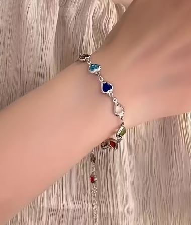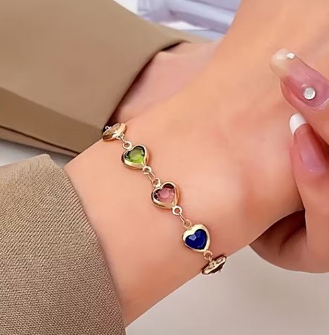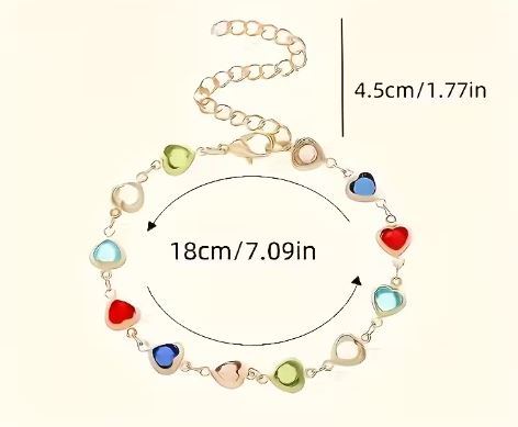 Women's Gold Plated Heart Charm Bracelet with Multicolor Beads & Rhinestone Heart Clusters - Bohemian Vintage Jewelry Gift for Wedding, Party, Valentine's Day, Casual Attire - Year-Round Accessory