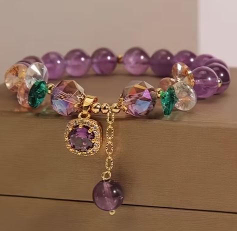 A Stylish Amethyst Bead Bracelet Adorned with Cubic Zirconia, Uncoated for a Fashionable Look, Perfect for Everyday Wear