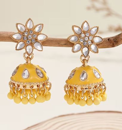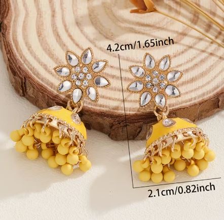 1 Pair of Jhumka Earrings with Gorgeous Rhinestone Chand Bali, Casual Bell Tassel Traditional Dangle for Women's Daily Wear/Festivals/Weddings and Parties Jewelry