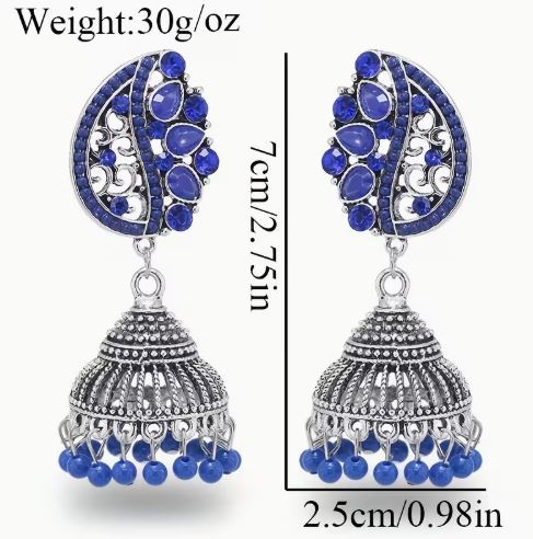 1 Pair Zinc Alloy Colorful Blue Bohemian Style Earrings with Rhinestone Birdcage Pendant Suitable for Daily