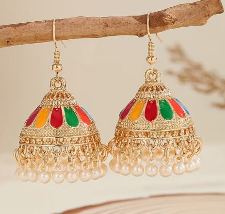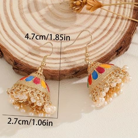 1 Pair Of Fashion Jhumka Colorful Earrings Imitation Pearl Tassel Color-Blocked Earrings For Women's Daily