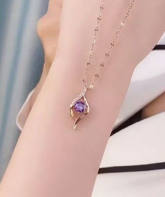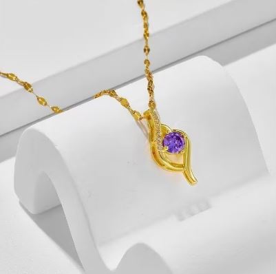 Fashionable Y Shape Amethyst Heart Necklace | Golden Tone Elegant Jewelry for Women, Suitable for Daily and Music Festival Occasions, Made of Stainless Steel with Synthetic Zirconia