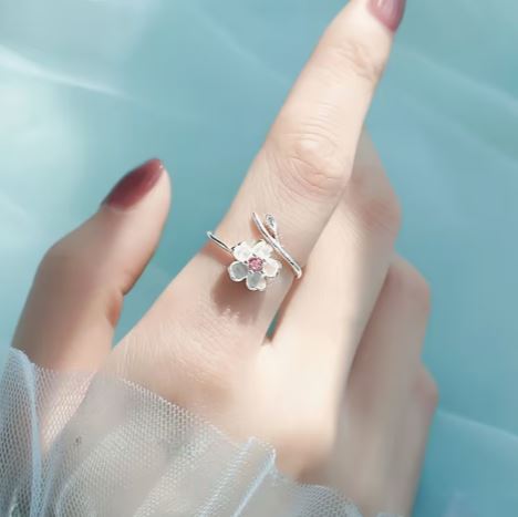 A Delicate Ring Featuring a Small Flower Design. This Luxurious Fashion Trend Jewelry Is Perfect for Everyday Wea